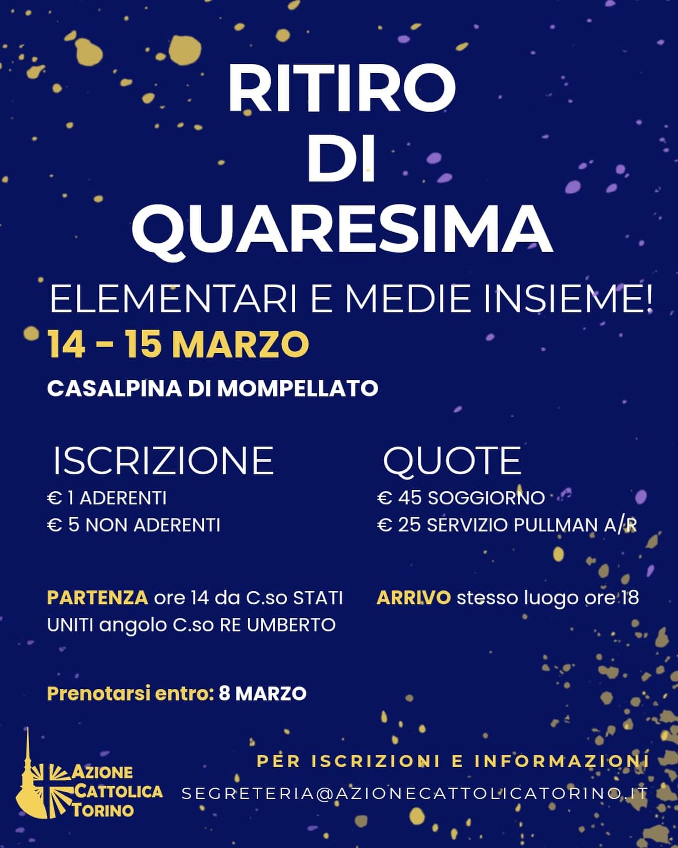 Anche quest’anno durante il Tempo di Quaresima, l’ACR propone due giorni di preghiera e riflessione per i bambini delle elementari e i ragazzi delle medie.