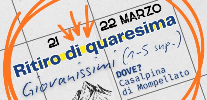 Il 21-22 marzo i Giovanissimi di I-V Superiore vivranno il loro ritiro di Quaresima a Casalpina di Mompellato.