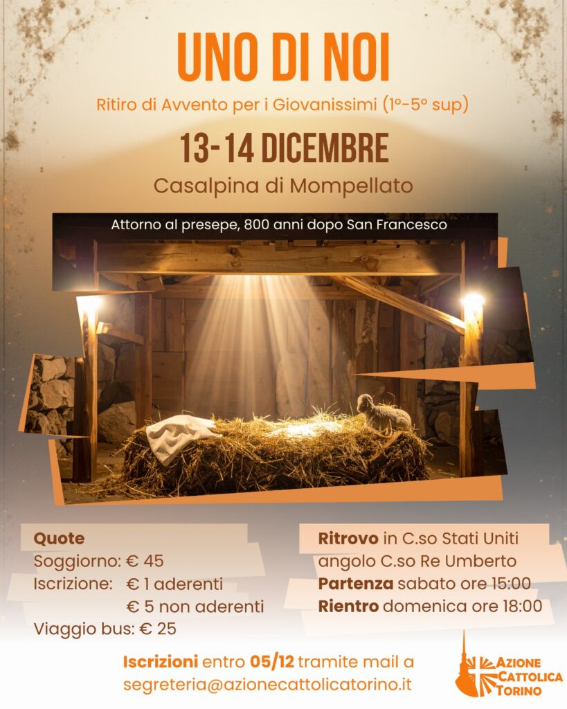 Dal 13 al 14 dicembre a Casalpina di Mompellato i ragazzi delle Superiori vivranno un tempo di riflessione, condivisione e fraternità mettendo al centro il presepe, in occasione degli 800 anni dal primo presepe allestito da san Francesco a Greccio.