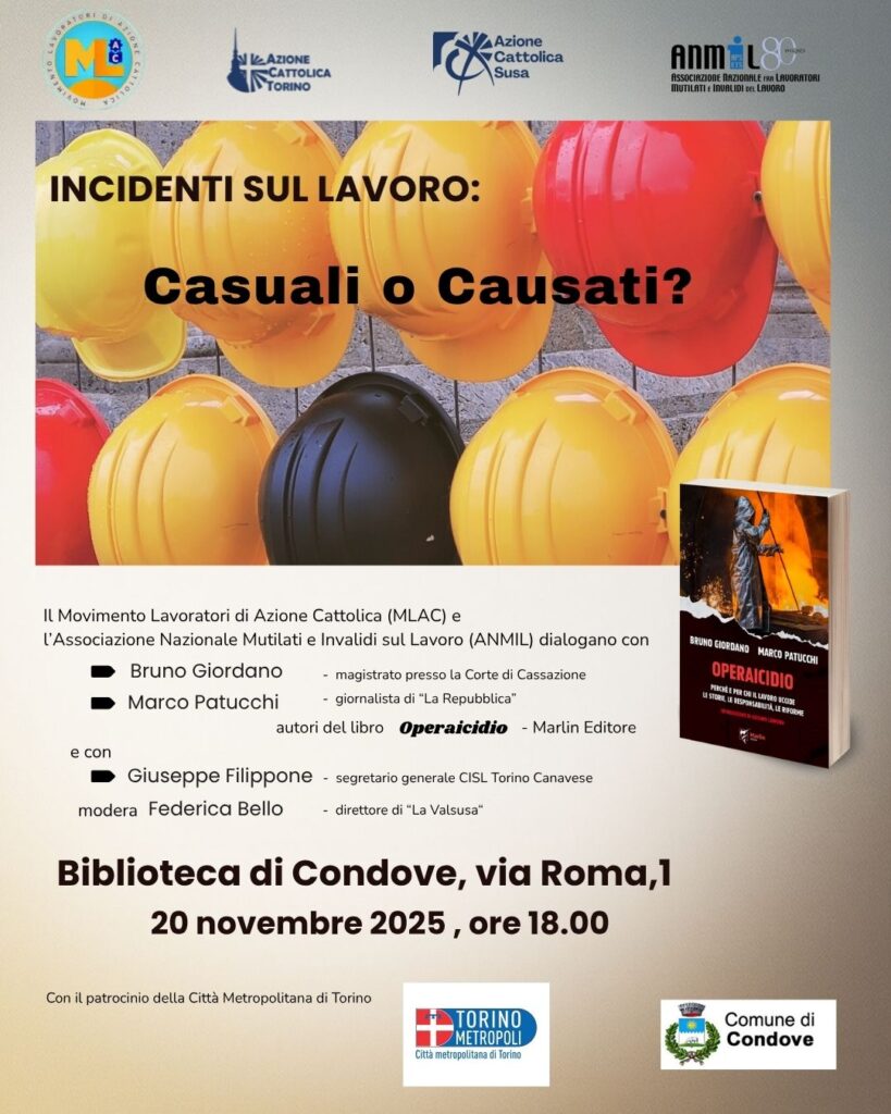 - il 20 novembre 2025, alle ore 18.00, presso la Biblioteca di Condove, v. Roma, 1;