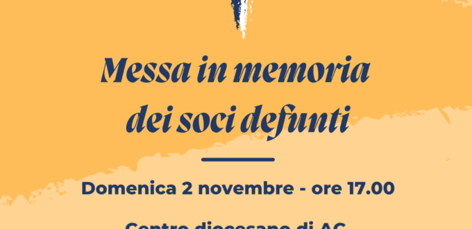 Domenica 2 novembre, alle ore 17:00, presso il Centro diocesano dell’AC di Torino (corso Matteotti 11), verrà celebrata la Santa Messa in ricordo dei soci defunti.